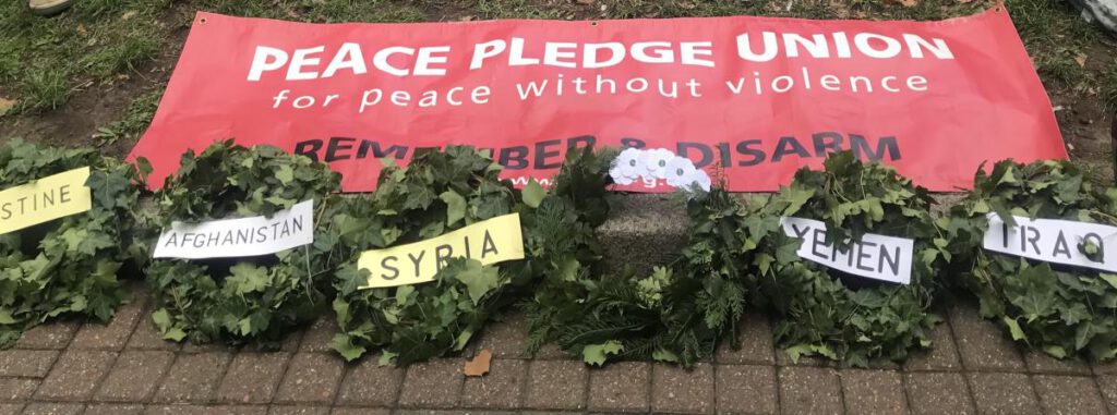 Eine ähnliche stille Aktion fand am 25.09.2025 in London statt:Aktive der Peace Pledge Union (PPU) legten vor dem Messegelände der DSEI Kränze nieder, die an die Kriegsopfer in Syrien, Afghanistan und anderen Ländern erinnerten. Dazu in großer Schrift „Remember & Disarm“ (Gedenkt ihrer und rüstet ab). In ihrer Pressemitteilung heißt es: „PPU führte die Mahnwache neben anderen Gruppen gemeinsam mit der Organisation Every Casualty Counts (ECC, Jedes Opfer zählt) durch, die die Opfer bewaffneter Konflikte zählt, identifiziert und bekannt macht.  (…) Wir lesen Geschichten über einzelne Opfer der bewaffneten Konflikte des Jahres 2024 vor, insbesondere aus Palästina, Afghanistan, Syrien, Ukraine, Irak und Jemen. (…) Mindestens 21.480 Frauen und 16.690 Kinder wurden in bewaffneten Konflikten zwischen 2023 und 2024 getötet, 80 % der Kinder und 70 % der Frauen alleine in Gaza. Wir hielten Schweigemomente für all diese menschlichen Verluste. Wir schlugen alle 12 Minuten eine Glocke, um ein weiteres ziviles Opfer zu beklagen und zu würdigen. Wir (…) verbinden die Erinnerung an die Opfer mit einem „Nie wieder!“ und mit einer Ablehnung des Militarismus. (…) Die Tausende Menschen, die DSEI besuchen, blenden diese tödliche und zerstörerische Realität, die mit dem Waffenhandel verbunden ist, aus. Wir wollen sie mit dieser Realität der menschlichen Kosten durch Kriege konfrontieren.“