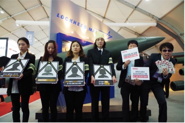 Protest gegen ADEX Waffenmesse in Seoul (Foto: World Without War Südkorea)